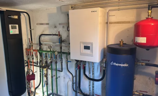 ROSSO est intervenu pour le remplacement d'une chaudière fioul par une pompe à chaleur air/eau d'une villa à Grimaud.